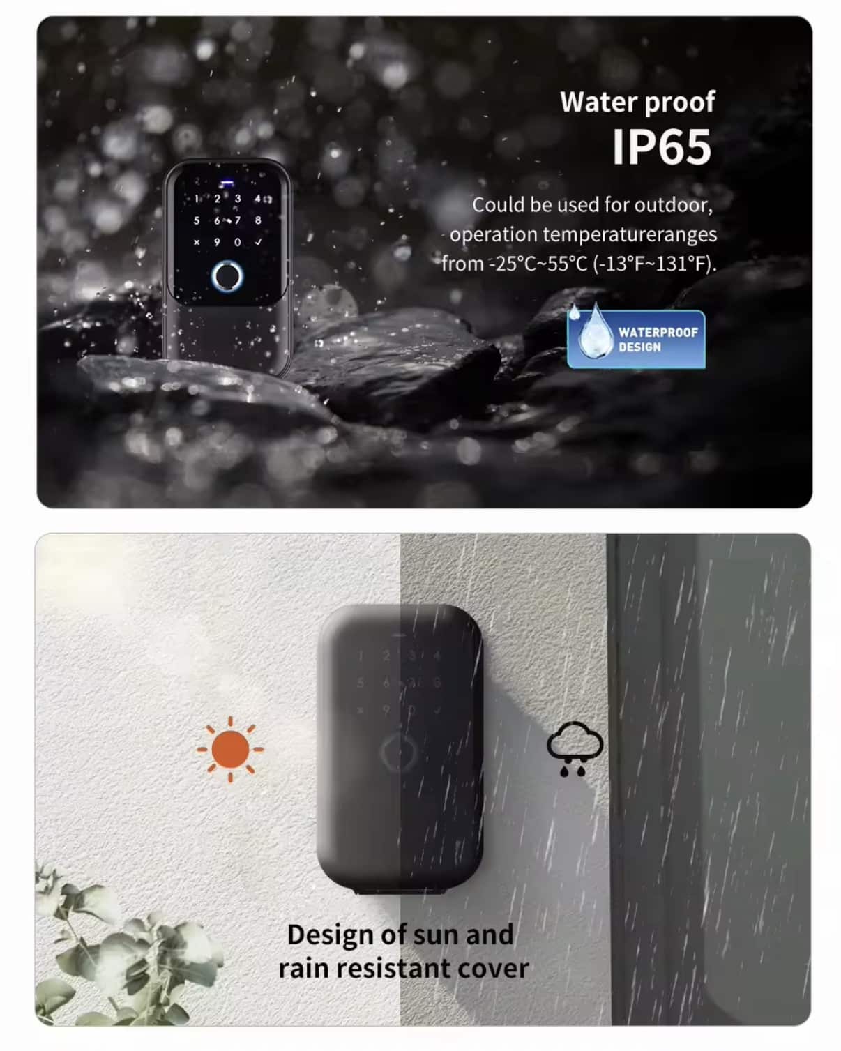 De kluis is IP65 waterdicht en geschikt voor buitenmontage.